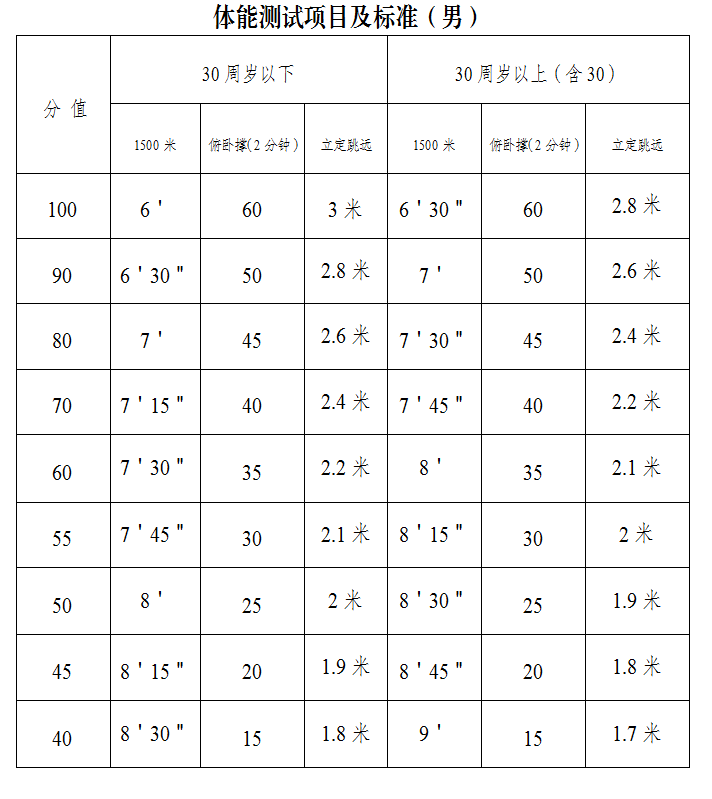 (2)體能測(cè)試項(xiàng)目及標(biāo)準(zhǔn)(附件3)。