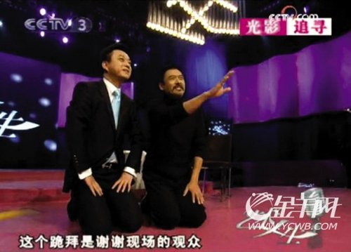 更雷人的一幕出現(xiàn)了———發(fā)哥突然拉著朱軍,面對現(xiàn)場觀眾跪了下來,說這是為了讓他感受《孔子》是如何復原2000年前的真實生活的。朱軍一臉惶恐,沒想到發(fā)哥又繼續(xù)拉著他,以額貼地,實實在在地給觀眾叩了一個頭,說要感謝觀眾。緊接著,發(fā)哥向著朱軍跪了下來,給他叩了一個頭。正當朱軍驚恐莫名,發(fā)哥學著朱軍慣用的深情語調(diào),極其“誠懇”地表示,因為他喜歡看《藝術(shù)人生》,朱軍跟他父親的故事令他非常感動。這下,朱軍不得不也以磕頭“還禮”。