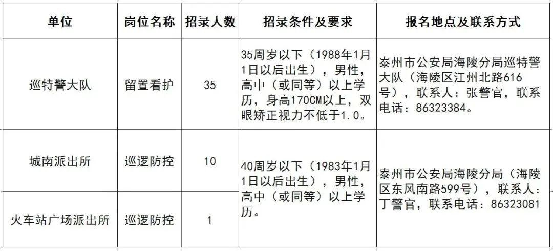 因工作需要,泰州市公安局海陵分局決定面向社會公開招錄警務輔助人員?,F就有關事項公告如下: