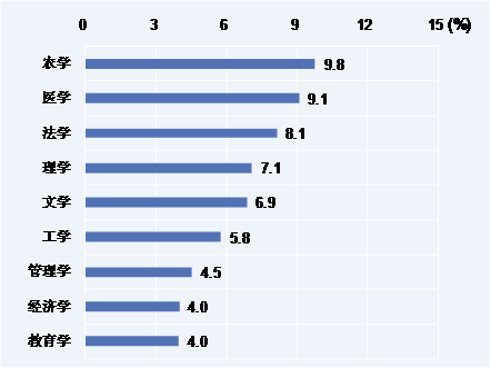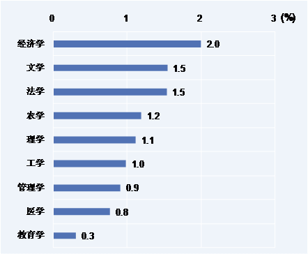 注:哲學(xué)、歷史學(xué)專業(yè)大類由于樣本不足,數(shù)據(jù)暫缺。