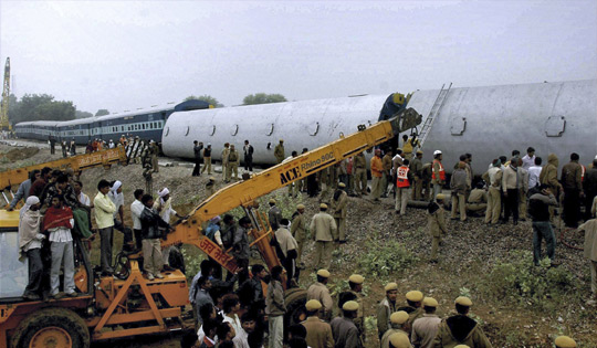 印度一火車發(fā)生脫軌事故造成數(shù)十人傷亡